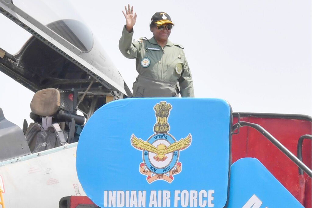 రాష్ట్రపతి ద్రౌపది ముర్ము శనివారం పైలెట్ దుస్తులు ధరించి యుద్ధ విమానంలో కొద్ది సేపు విహరించారు. భారత వైమానిక దళానికి చెందిన సుఖోరు యుద్ధ విమానంలో ఆమె ప్రయాణించారు. అస్సాంలోనితేజ్ ఎయిర్ ఫోర్స్ స్టేషన్లో ఈ దృశ్యం కనిపించింది. రాష్ట్రపతి త్రివిధ దళాలకుసుప్రీం కమాండర్ అను సంగతి విదితమే.