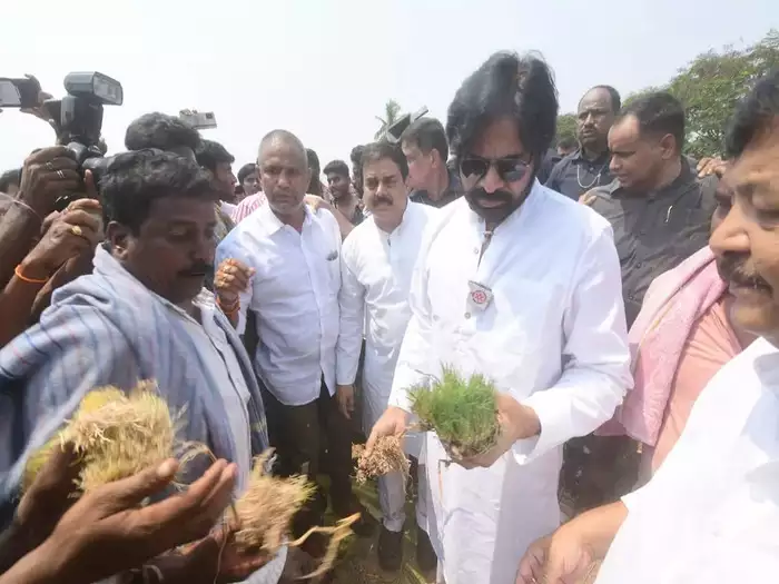 ఇటీవల కురిసిన అకాల వర్షాల వల్ల పంట నష్టపోయిన రైతులను పరామర్శించారు. ఉమ్మడి తూర్పు గోదావరి జిల్లా పర్యటనలో భాగంగా దెబ్బతిన్న పంట పొలాలను సందర్శించి రైతులతో మాట్లాడారు. మొలకలు వచ్చిన ధాన్యాన్ని ఆయన పరిశీలించారు. రైతులను ఆదుకునేలా ప్రభుత్వంపై ఒత్తిడి తీసుకొస్తామని రైతులకు పవన్ కళ్యాణ్ భరోసా ఇచ్చారు. రైతులకు న్యాయం జరిగే వరకు పోరాటం కొనసాగిస్తామని స్పష్టం చేశారు.
