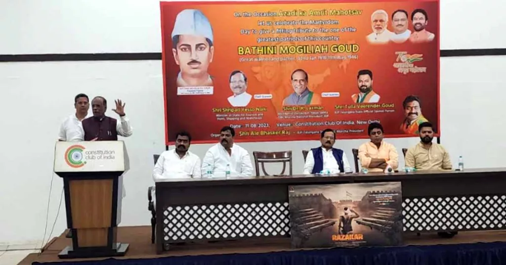 మజ్లిస్ ఒత్తిడికి లోబడి నిజాంకి వ్యతిరేకంగా పోరాడిన వారి చరిత్ర మరుగున పడేలా చేశారని ఆయన ఆరోపించారు. నిజాంకి వ్యతిరేకంగా పోరాడిన బత్తిని మొగిలయ్యకు ఆజాదీకా అమృత్ మహోత్సవ్లో భాగంగా దేశ రాజధానిలో ఘన నివాళి అర్పించామని వివరించారు. సమాజానికి వన్నె తెచ్చిన వారికి బీజేపీ సరైన గుర్తింపు ఇస్తుందని చెప్పారు. రజాకార్ల పోకడలను కళ్ళకు కట్టేలా సినిమా తీస్తున్న రజాకర్ సినిమా బృందాన్ని లక్ష్మణ్ అభినందించారు.