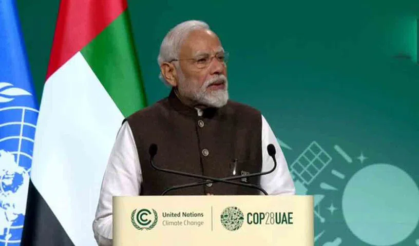 ప్రపంచ స్థాయిలో వాతావరణ పరిరక్షణకు అన్ని దేశాలు కలిసికట్టుగా వ్యవహరించాలని, గణనీయ రీతిలో కార్బన్ ఉద్గారాల కట్టడికి చర్యలు తీసుకోవాలని భారత ప్రధాన మంత్రి నరేంద్ర మోదీ పిలుపునిచ్చారు. దుబాయ్ వేదికగా ఆరంభమైన పర్యావరణ ప్రపంచ స్థాయి సదస్సు కాప్ 28లో ఆయన శుక్రవారం ప్రసంగిస్తూ కేవలం ఆషామాషీగా లేదా నామమాత్రంగా గ్లోబల్ వ్యర్థాల కట్టడికి దిగితే సరిపోదని స్పష్టం చేశారు.