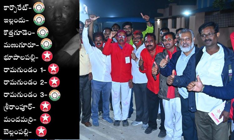సింగరేణిలో ఎర్ర జెండా రెపరెపలాడింది. గుర్తింపు కార్మిక సంఘం ఎన్నికల్లో సీపీఐ అనుబంధ సంఘమైన ఏఐటీయూసీకి కార్మికులు పట్టం కట్టారు. ఏఐటీయూసీ అనుబంధ ‘సింగరేణి కాలరీస్ వర్కర్స్ యూనియన్’ను కార్మికులు తమ గుర్తింపు సంఘంగా ఎన్నుకున్నారు. ఎన్నికల్లో కాంగ్రెస్ అనుబంధ కార్మిక సంఘం ఐఎన్టీయూసీపై వామపక్ష అనుబంధ ఏఐటీయూసీ కార్మిక సంఘం దాదాపు 3 వేల ఓట్ల ఆధిక్యాన్ని సాధించింది.