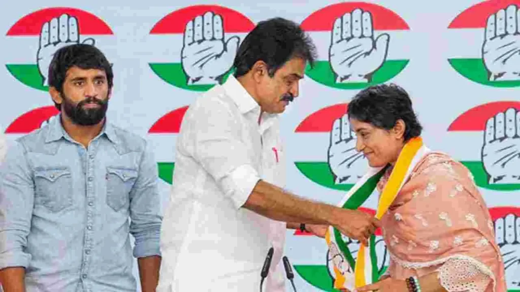 ఆమె కాంగ్రెస్ లో చేరిన కొద్దీ సేపటికే పార్టీ విడుదల చేసిన హర్యానాకు సంబంధించి 31 మంది అభ్యర్థుల జాబితాలో ఆమెకు జులనా సీట్ ను కేటాయించారు.కాగా, భజరంగ్ పూనియాను కిసాన్ కాంగ్రెస్ అఖిల భారత వర్కింగ్ ప్రెసిడెంట్ గా నియమించారు.