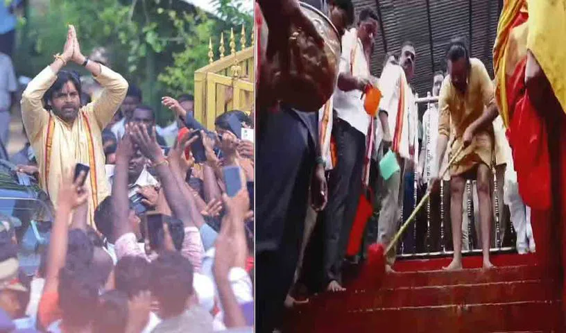 తిరుమల లడ్డూ కల్తీపై క్షమించమంటూ ఏపీ డిప్యూటీ సీఎం పవన్ కల్యాణ్ ప్రాయశ్చిత్త దీక్ష చేస్తున్నారు. ఇందులో భాగంగా విజయవాడ ఇంద్రకీలాద్రిపై ఉన్న కనకదుర్గ ఆలయంలో ఆయన శుద్ధి కార్యక్రమం నిర్వహించారు. అనంతరం అమ్మవారిని దర్శించుకుని ప్రత్యేక పూజలు చేశారు. అంతకుముందు ఆలయ అధికారులు పవన్కు స్వాగతం పలికారు. తర్వాత ఆలయం వద్ద మెట్లను ఆయన శుభ్రం చేశారు.
