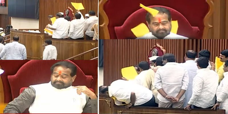 స్పీకర్ పోడియంను కూడా చుట్టుముట్టడంతో సభను స్పీకర్ కాసేపు వాయిదా వేశారు. సభ తిరిగి ప్రారంభమైన తర్వాత కూడా టిడిపి ఆందోళన చేపట్టి సభా కార్యక్రమాలను అడ్డుకోవడంతో ప్రశ్నోత్తరాలకు మళ్లీ అంతరాయం ఏర్పడింది.