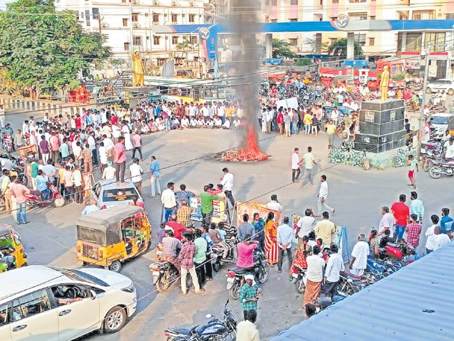 మాచర్ల నియోజకవర్గంలో పిన్నెల్లి రామకృష్ణారెడ్డి అనుచరులు రోడ్లపై ఆందోళన, వాహనాలు ధ్వంసం చేశారు. రింగ్ రోడ్డు సెంటర్ లో బైక్ ని తగ్గలబెట్టి ఆందోళన చేపట్టారు. పార్టీ కార్యకర్తలు భారీగా రోడ్లపైకి వచ్చారు. పిన్నెల్లికి మంత్రి పదవి దక్కకపోవడంపై అసంతృప్తిని వెల్లగక్కారు. మంత్రివర్గంలోకి తీసుకోకపోతే తమ పదవులకు రాజీనామా చేస్తామని మాచర్ల మున్సిపల్ ఛైర్మన్ కిషోర్తో పాటు కౌన్సిలర్లు, ఎంపీపీలు, జడ్పీటీసీలు, సర్పంచులు, ఎంపీటీసీలు ప్రకటించారు. .