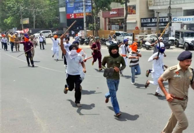 ఈ మార్చ్ను పంజాబ్ శివసేన వర్కింగ్ ప్రెసిడెంట్ హరీష్ సింగ్లా నిర్వహించారు. కాళి మాత దేవాలయానికి సమీపానికి ర్యాలీ చేరుకోగానే ‘ఖలిస్తాన్ ముర్దాబాద్’ అంటూ శివసేన సైనికులు నినాదాలు చేపట్టారు. దీంతో సిక్కు సంఘాలకు చెందిన కత్తులు పట్టుకుని వీధుల్లోకి వచ్చారు.