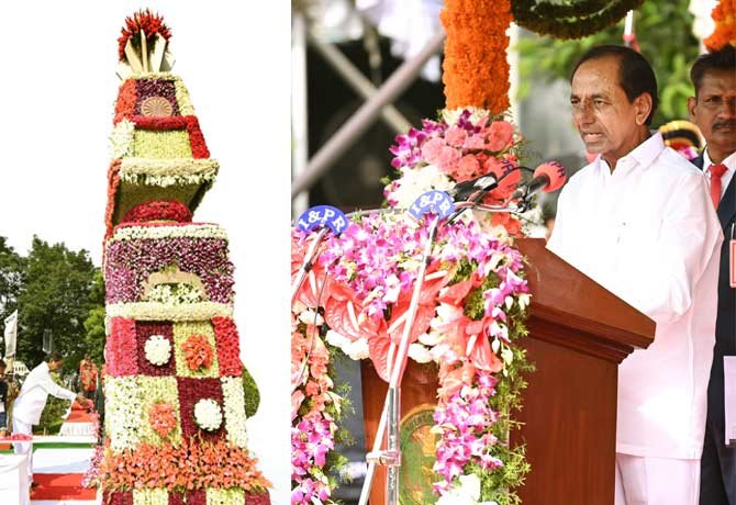 రాష్ట్రాల హక్కులను నరేంద్ర మోదీ ప్రభుత్వం హరించివేస్తోందని తెలంగాణ ముఖ్యమంత్రి చంద్రశేఖరరావు ధ్వజమెత్తారు. రాష్ట్రాలకు కేంద్ర ప్రభుత్వం గుదిబండగా మారిందని ఆయన విమర్శించారు. గురువారం హైదరాబాద్ పబ్లిక్ గార్డెన్లో జరిగిన తెలంగాణ రాష్ట్రావతరణ దినోత్సవ వేడుకల్లో సిఎం కెసిఆర్ జాతీయ జెండా ఎగురవేశారు.