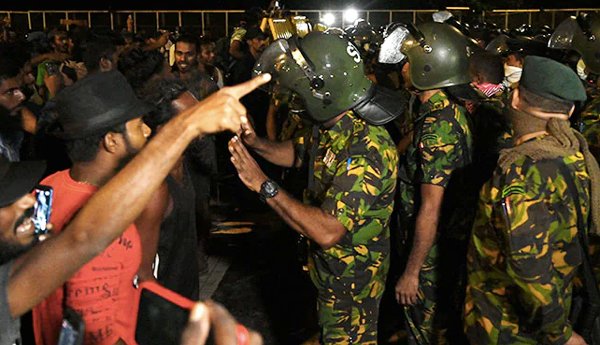 భద్రతా బలగాలు విరుచుకుపడ్డాయి. ప్రభుత్వానికి వ్యతిరేకంగా ఆందోళనలు చేస్తున్న కొలంబోలోనే ప్రధాన క్యాంప్పై గురువారం అర్ధరాత్రి వందల మంది ఆ దేశ భద్రతా బలగాలు, పోలీసులు దాడులు చేపట్టారు. అధ్యక్ష భవనాన్ని ముట్టడించిన నిరసనకారులకు చెందిన పలు టెంట్లను తొలగించారు. అధ్యక్షుడి సెక్రెటేరియట్ భవనం ముందు నిరసనకారులు ఏర్పాటు చేసిన బారికేడ్లను తొలగించే పనులు చేపట్టాయి భద్రతా బలగాలు.