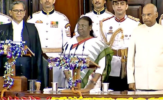“ప్రజాస్వామ్యం, సంప్రదాయాలు నాకు అత్యంత ప్రాధాన్యత అంశాలు. దేశంలోని మహిళలకు ప్రాధాన్యత ఇస్తానని హామీ ఇస్తున్నా” అని పార్లమెంట్ సెంట్రల్ హాల్ సాక్షిగా ఆమె ప్రసంగించారు. దేశ 75 ఏళ్ల స్వాతంత్ర్య ఉత్సవాల సమయంలో..రాష్ట్రపతిగా ఎన్నిక కావడం అదృష్టంగా భావిస్తున్నానని చెబుతూ అందరి విశ్వాసం, సంక్షేమం కోసం పాటుపడదామని పిలుపిచ్చారు.
