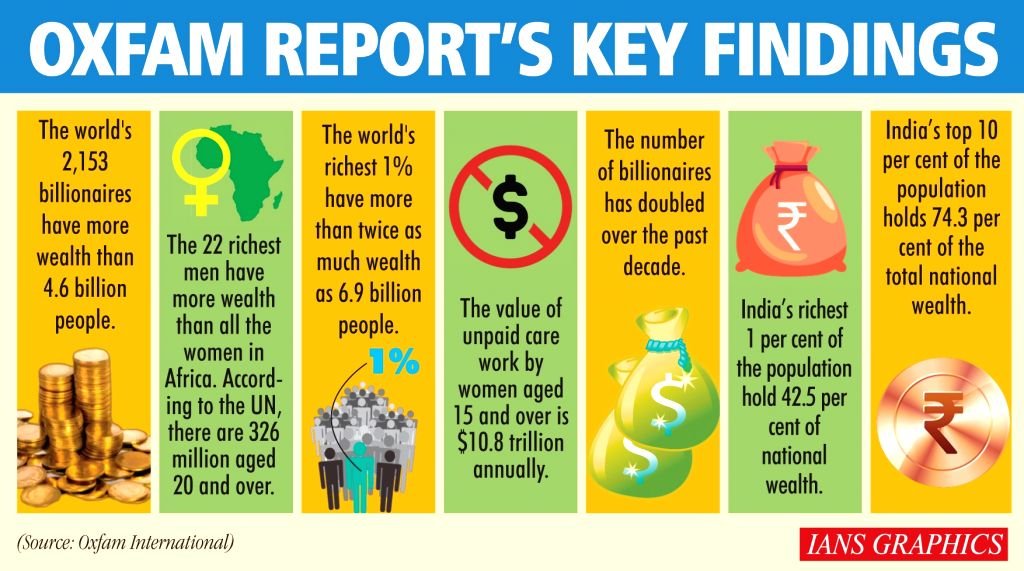 దావోస్లో జరుగుతున్న ‘వరల్డ్ ఎకనామిక్ ఫోరమ్’ వార్షిక సమావేశం సందర్భంగా ఆక్స్ఫామ్ సోమవారం ఈ నివేదికను విడుదల చేసింది. సర్వైవల్ ఆఫ్ ది రిచెస్ట్ పేరుతో ఈ నివేదికను రూపొందించింది. భారత్లోని పది మంది ధనవంతులపై 5 శాతం చొప్పున పన్ను విధించడం ద్వారా వచ్చే మొత్తంతో పాఠశాల మానేసిన పిల్లలందరినీ తిరిగి తీసుకురావచ్చని పేర్కొంది.